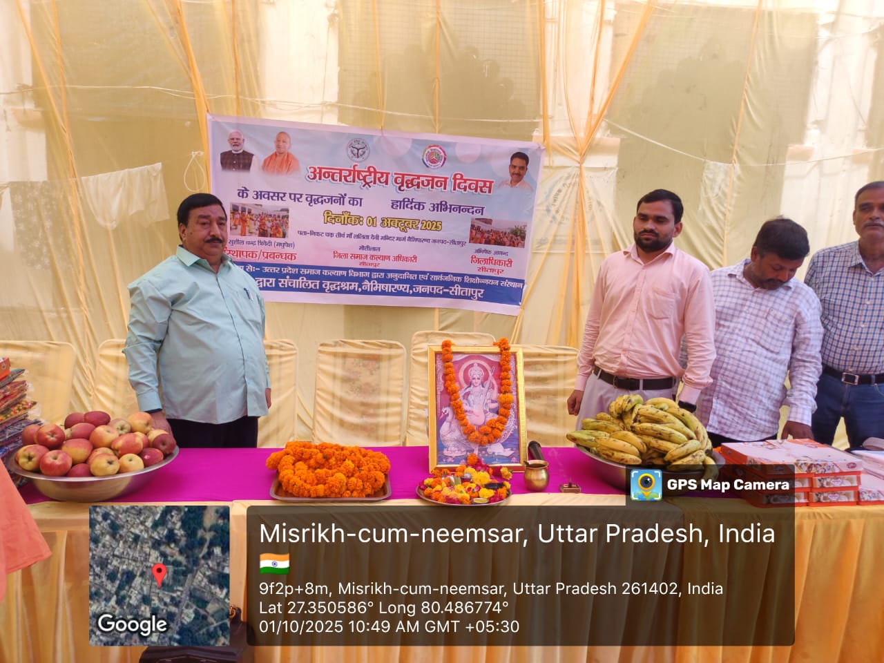 दिनांक 01 अक्टूबर 2025 को एस.एस. संस्थान द्वारा संचालित वृद्धाश्रम नैमिष, सीतापुर में अन्तर्राष्ट्रीय वृद्धजन दिवस मनाया गया। इस अवसर पर जिला समाज कल्याण विभाग से सुपरवाइज़र, ए.डी.ओ., लिपिक तथा सुलह अधिकारी श्री हर्षवर्धन भारती की गरिमामयी उपस्थिति रही।